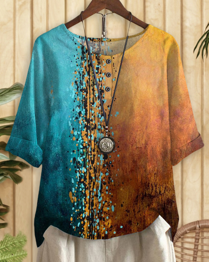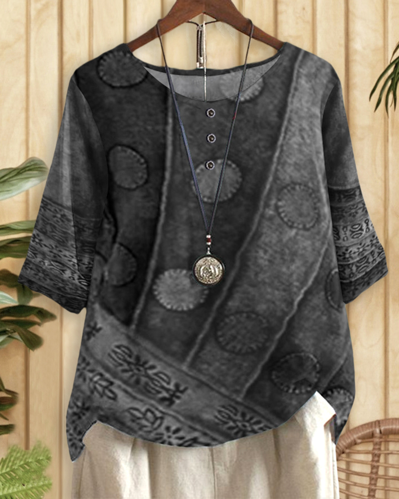 Paisley & Floral Print Mixed Patchwork Boho Button Blouse