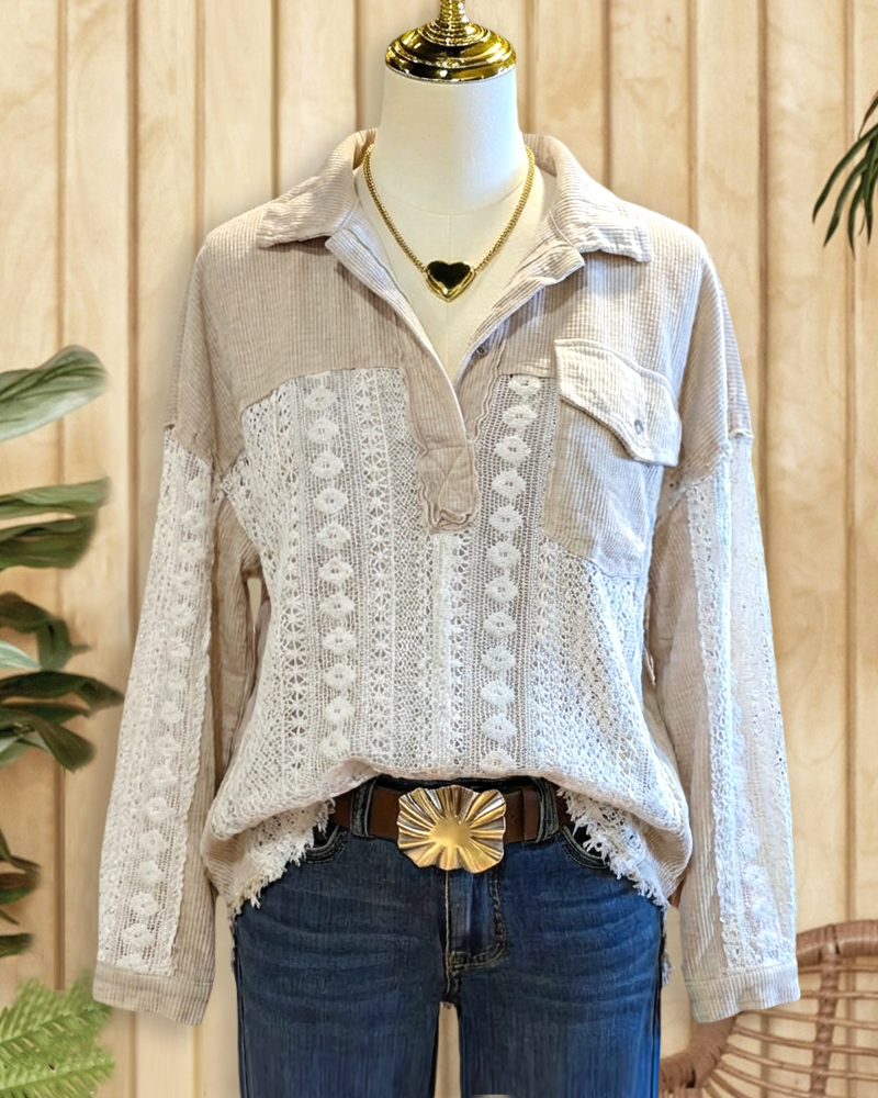 Patchwork Lace Contrasting Casual Drop-Shoulder Blouse