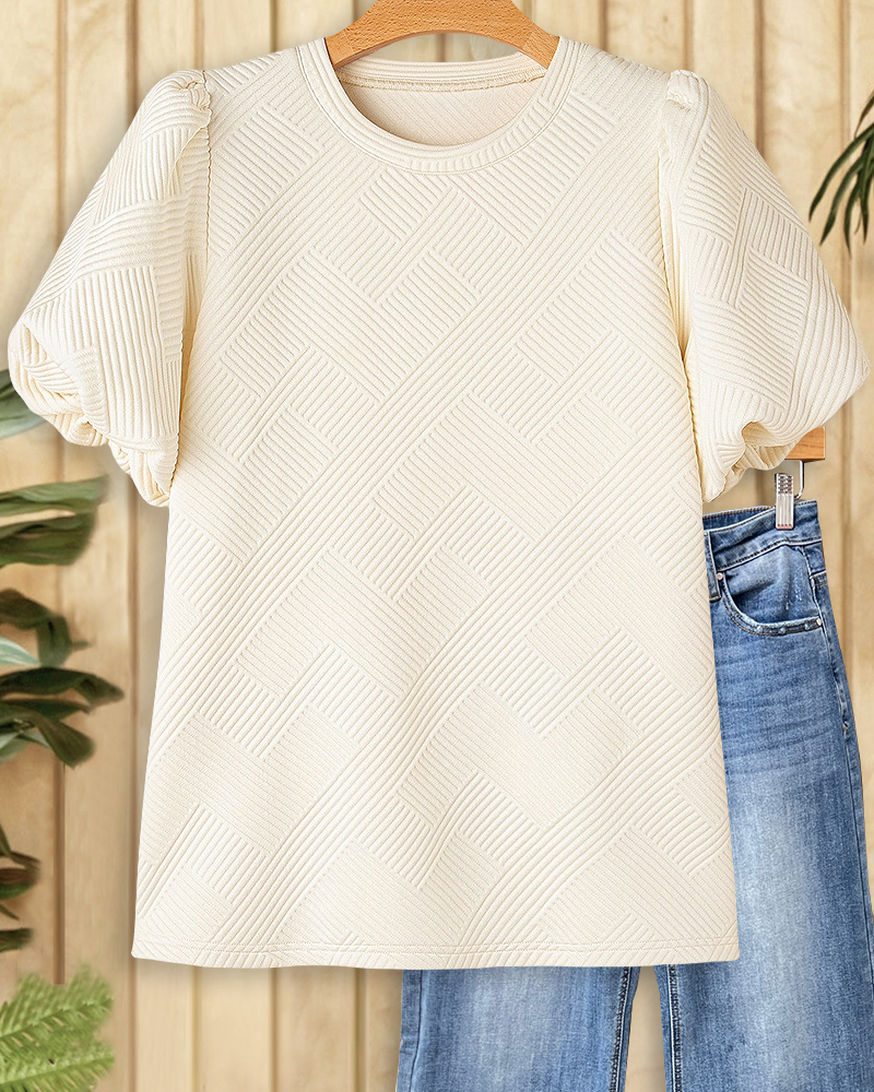 Solid Color Puff Sleeve Modern Textured Knitted Blouse
