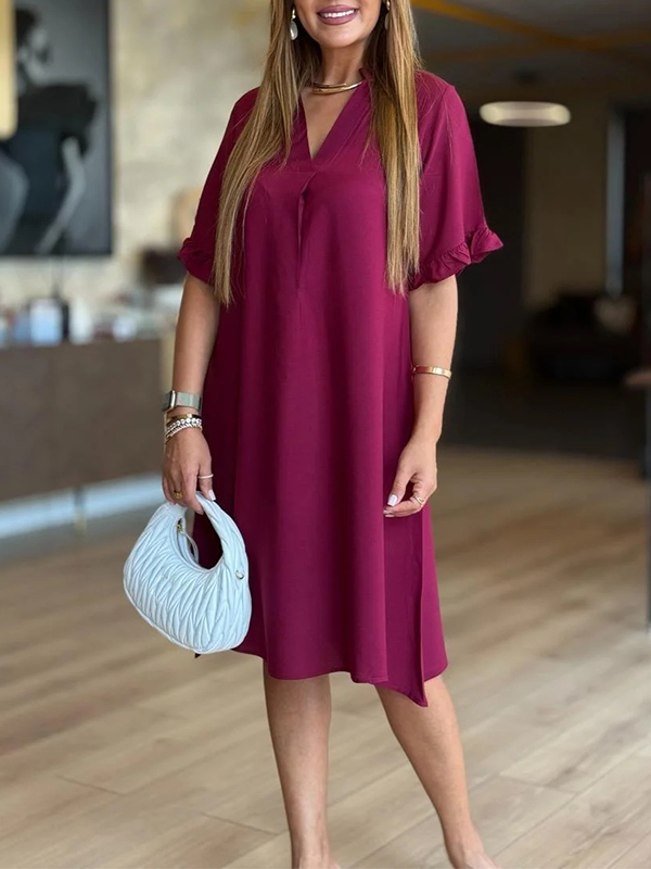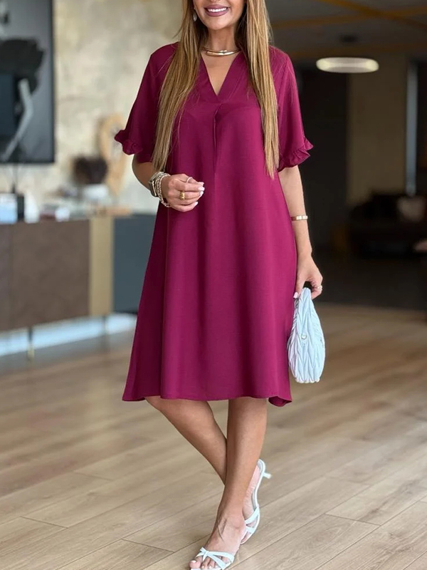 NEW🔥 V Neck Ruffle Sleeve Casual Dress