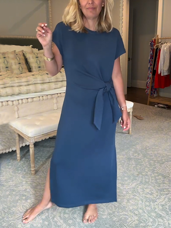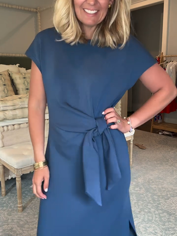 CLEARANCE🔥 Solid Color Comfort Stretchy Tie Dress