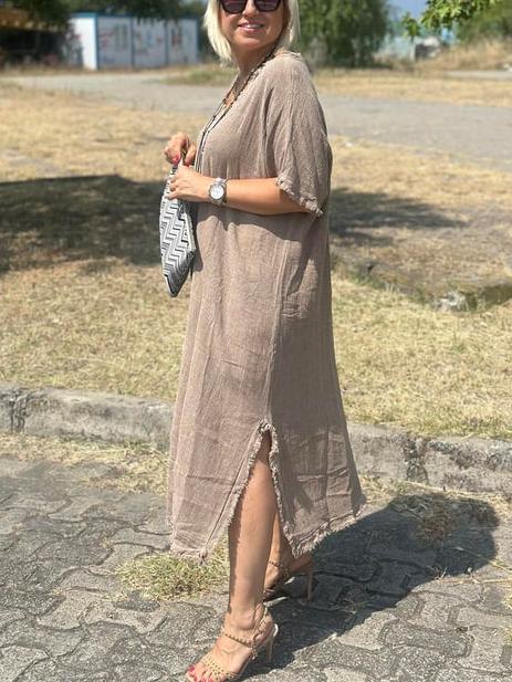 CLEARANCE 🔥 Vintage Tassel Trimmed Cotton Linen Dress