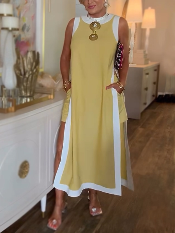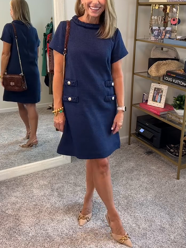 NEW🔥 Cotton Crew Neck Zip Pocket Dress