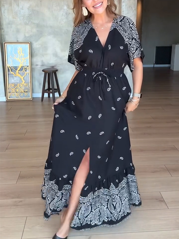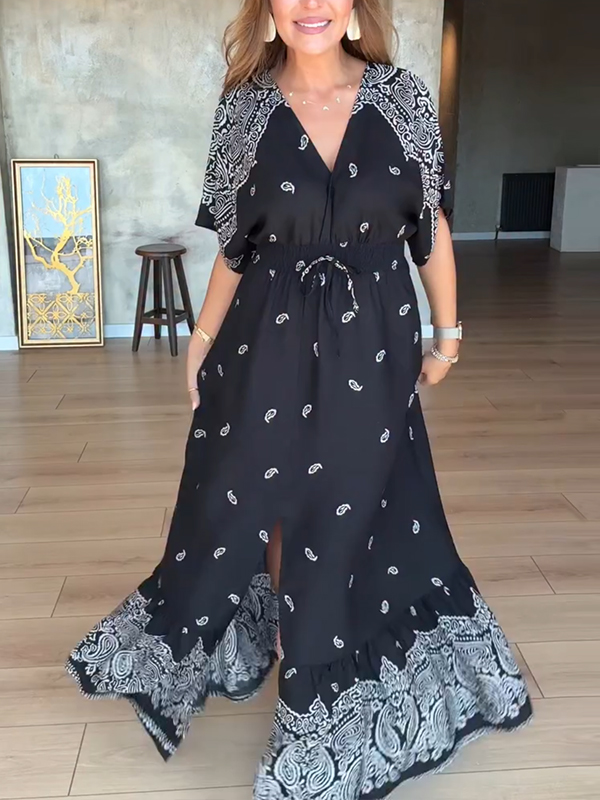 NEW🔥 V Neck Vintage Printed Maxi Dress