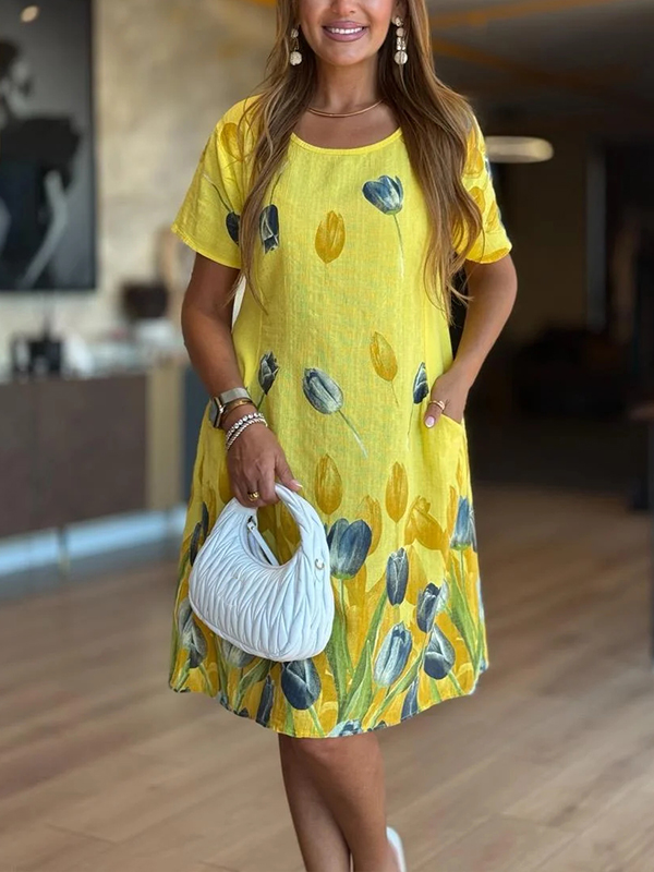 CLEARANCE🔥 Cotton Linen Elegant Printed Dress