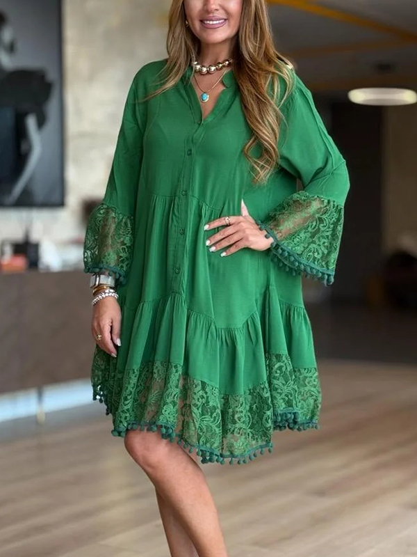 CLEARANCE🔥 Lace Ruffle Sleeve Shirt Dress