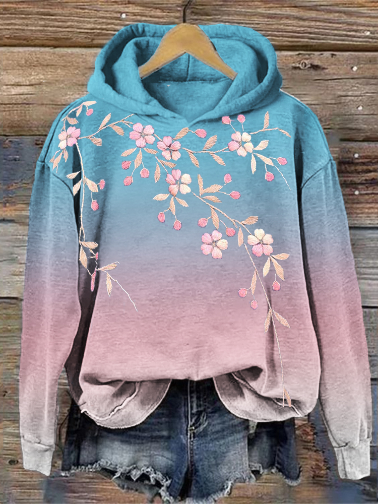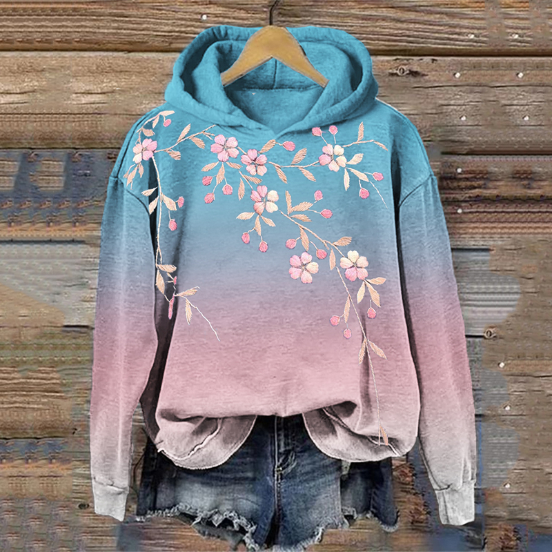 Cherry Blossom Embroidered Transgender Gradient Hoodie
