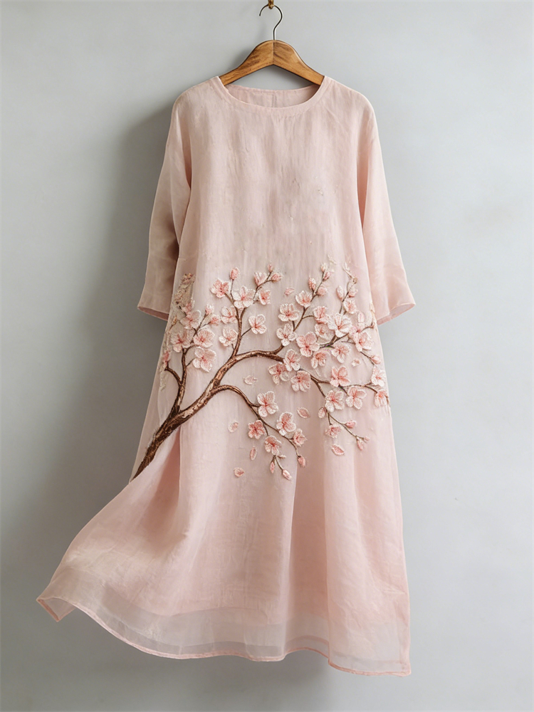 Cherry Blossom Japanese Flowy Linen Maxi Dress