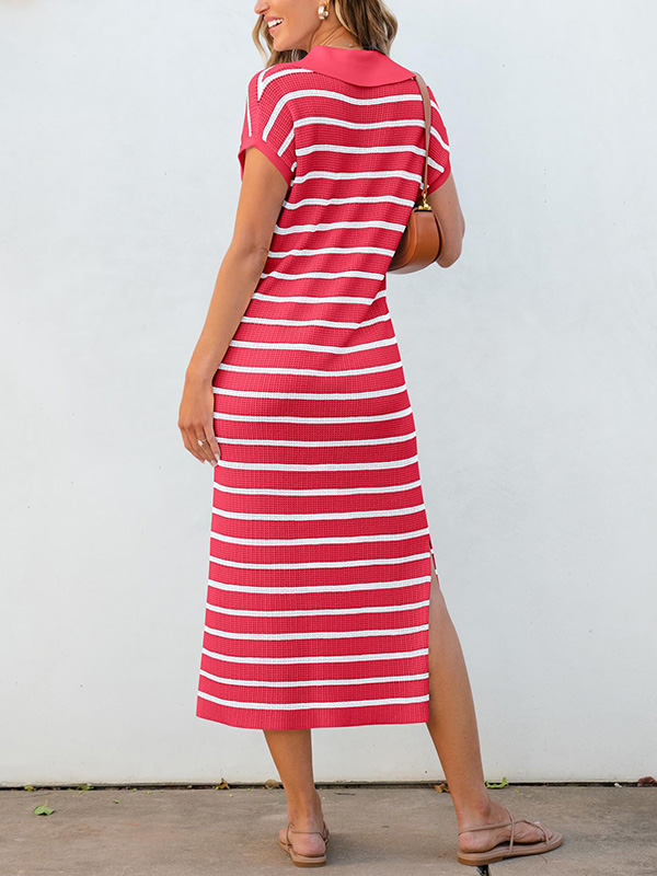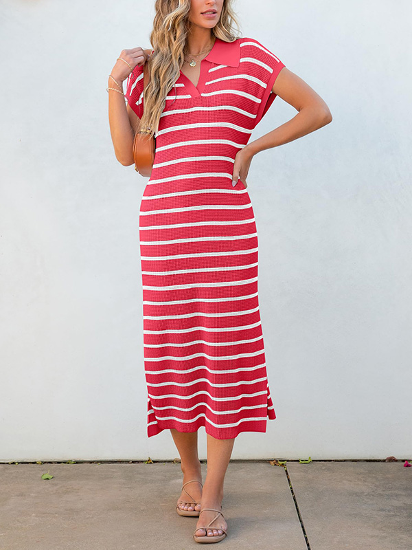 The Classic Striped Lapel Dress is designed for the modern woman who cares about sophistication and style. The elegant Maxi long dress is perfect for any occasion.