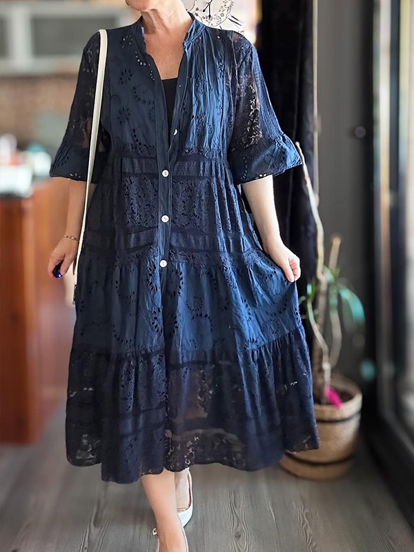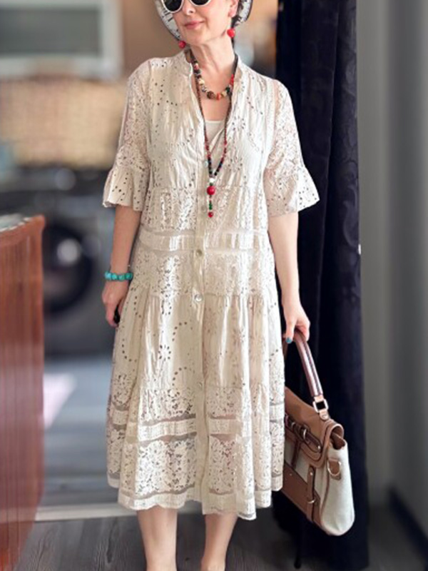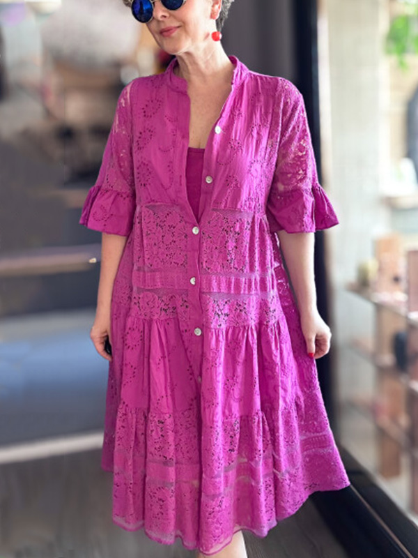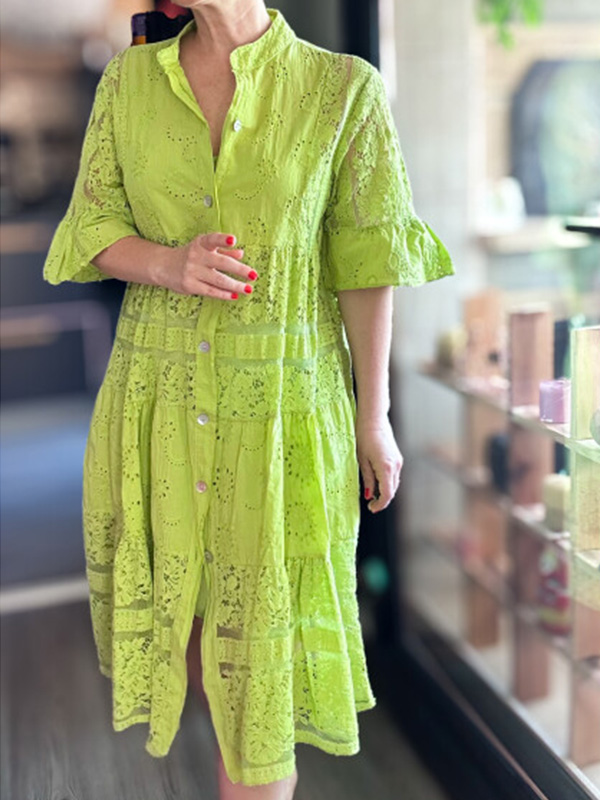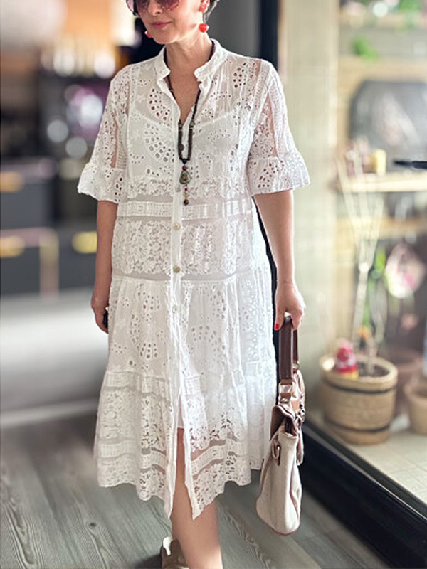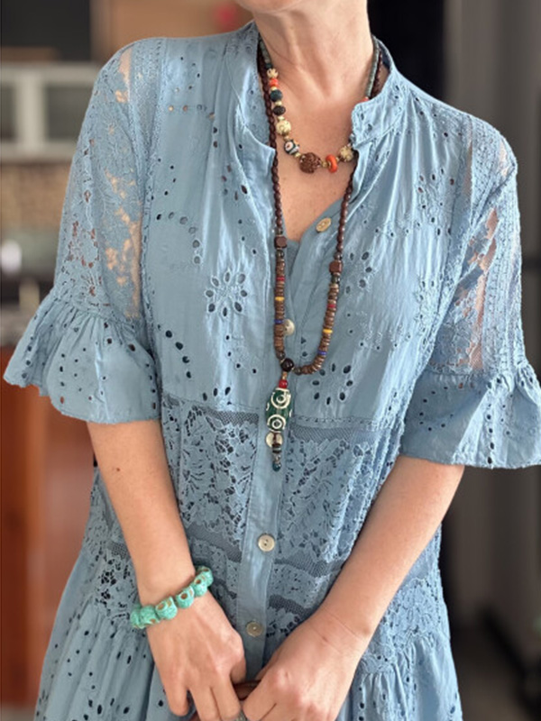 Timeless Elegance: Lace Ruffle Sleeve Shirt Dress