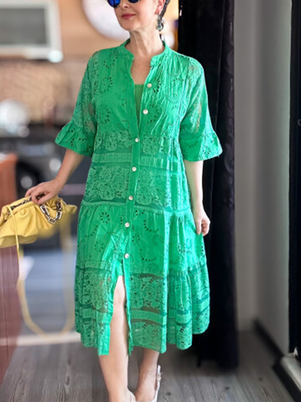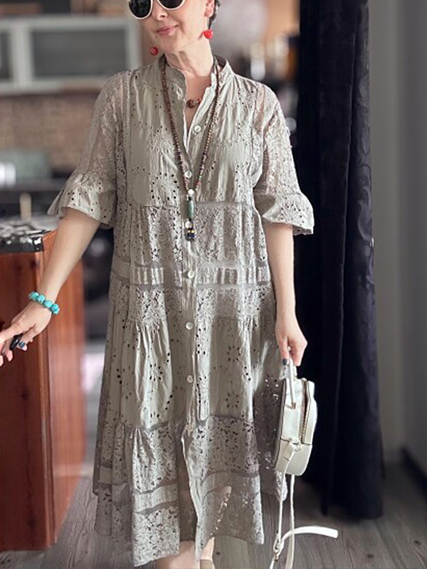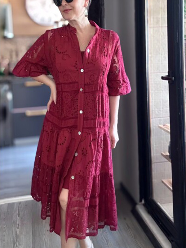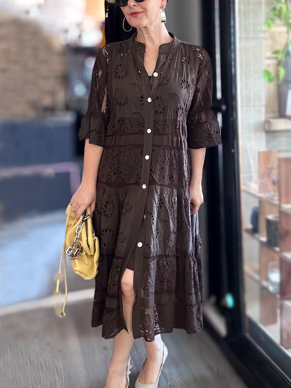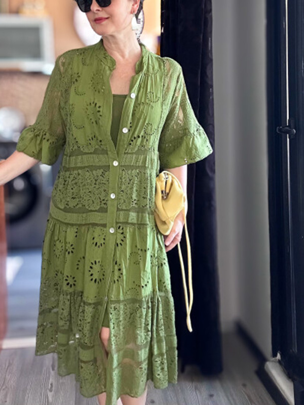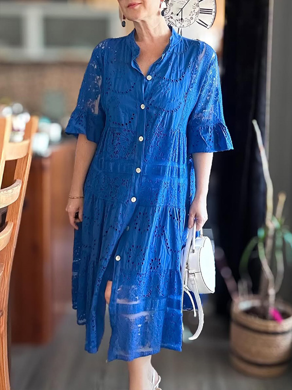 The Lace Ruffle Sleeve Shirt Dress is designed for the modern woman who cares about sophistication and style. The elegant Maxi long dress is perfect for any occasion.