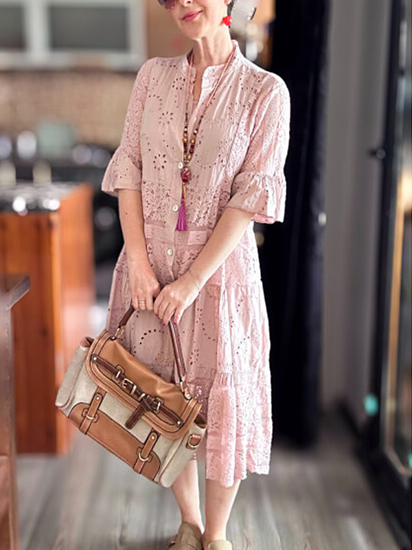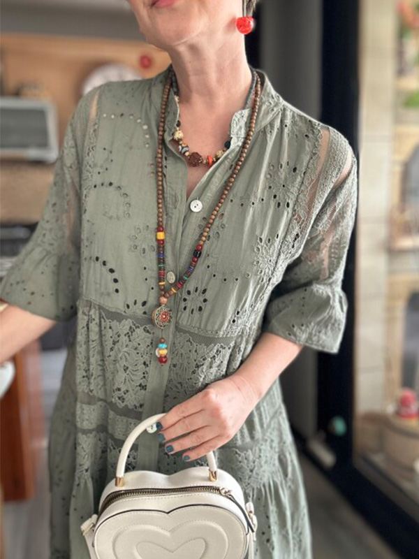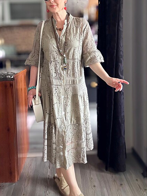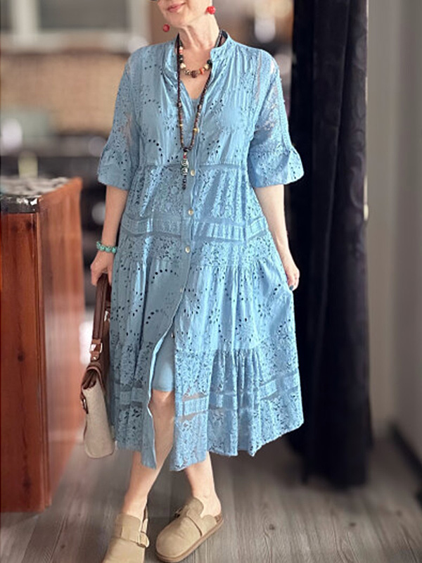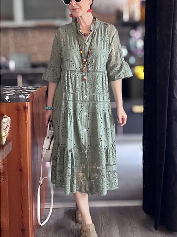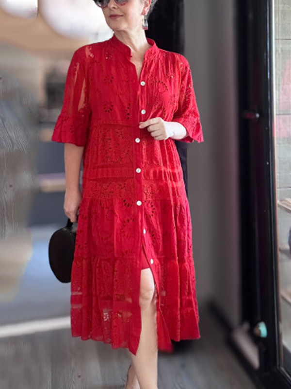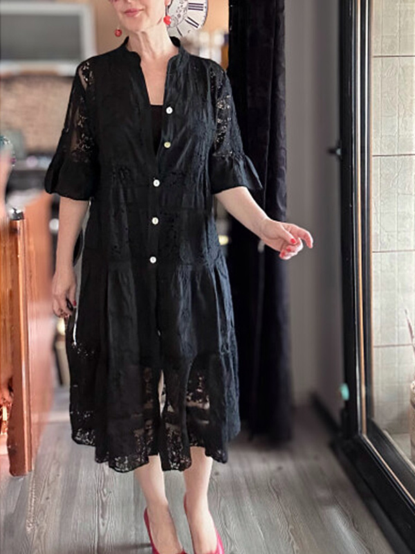 The Lace Ruffle Sleeve Shirt Dress is designed for the modern woman who cares about sophistication and style. The elegant Maxi long dress is perfect for any occasion.