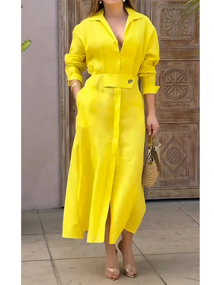 The Lapel Linen Long Sleeve Shirt Dress is designed for the modern woman who cares about sophistication and style. The elegant Maxi long dress is perfect for any occasion.