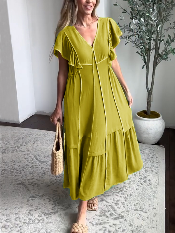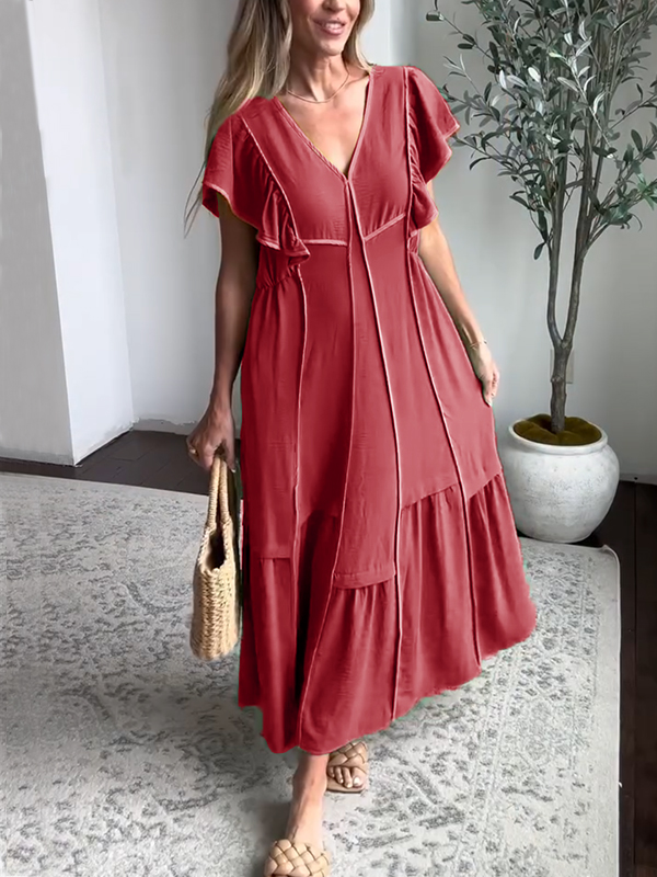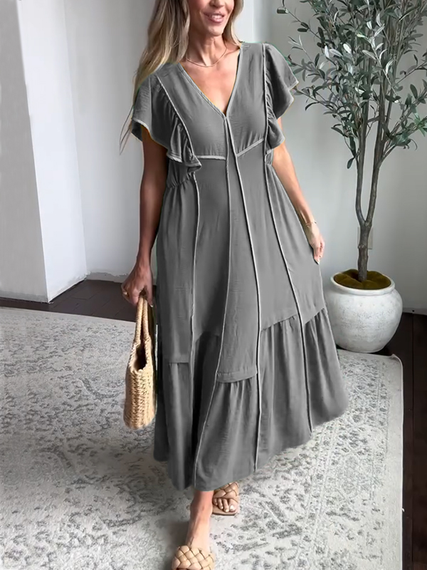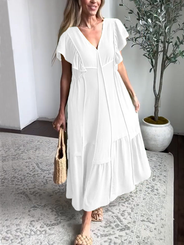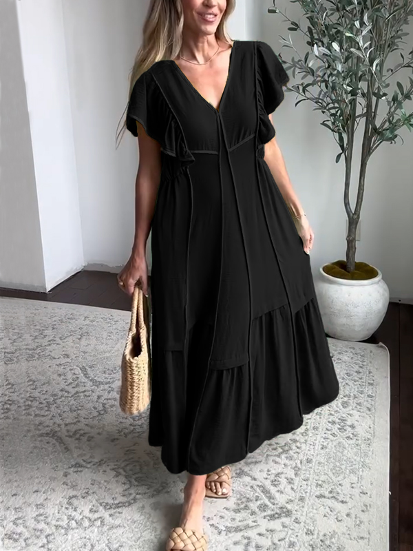 Timeless Elegance: Soft Loose V Neck Chiffon Dress