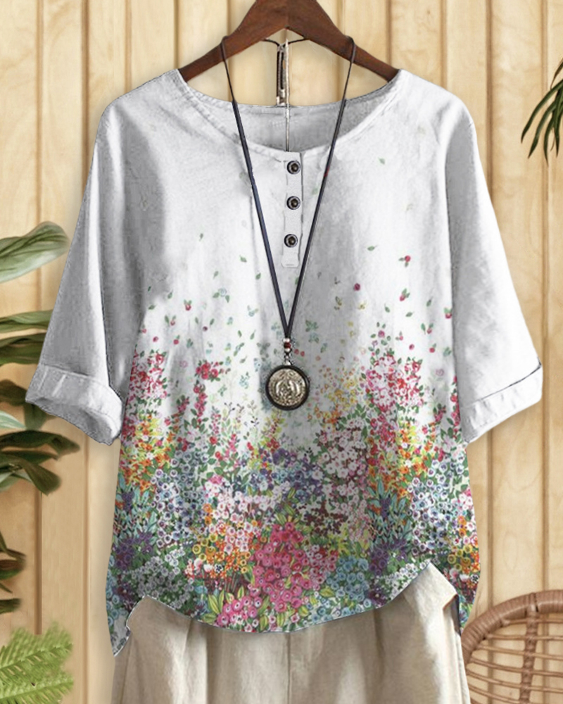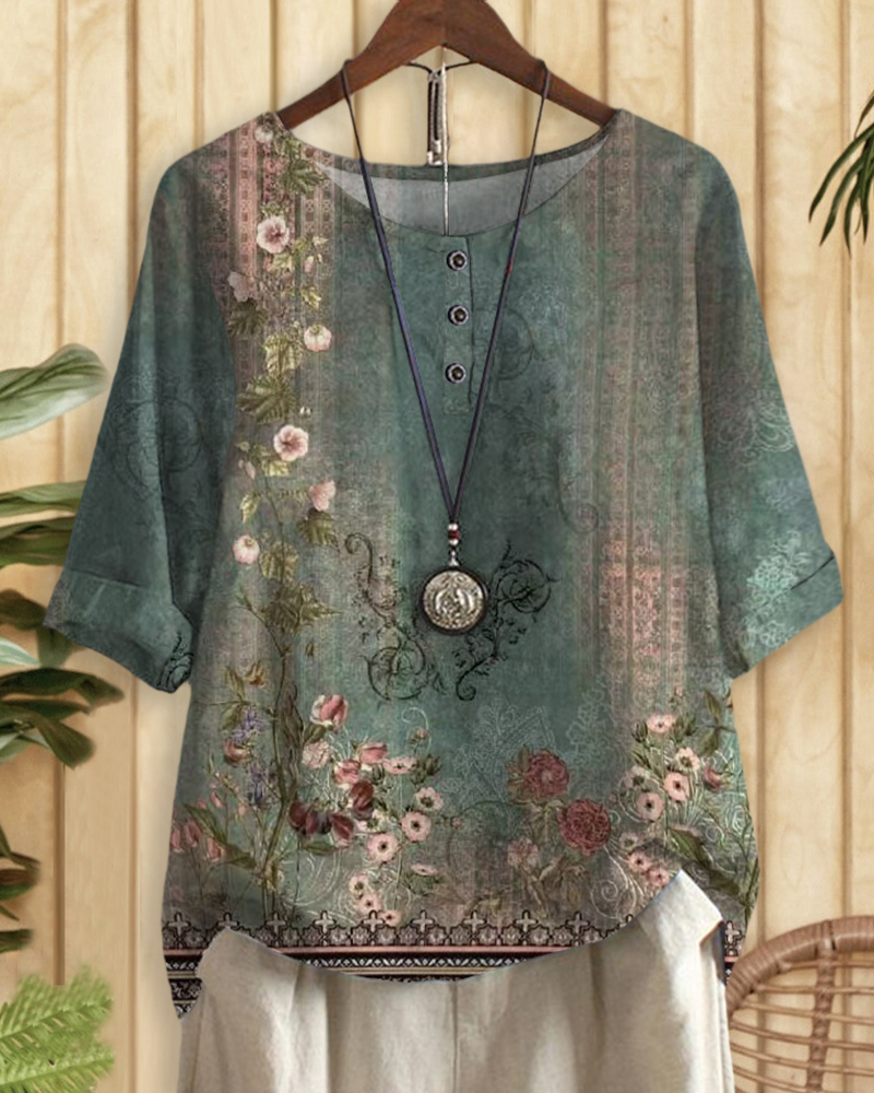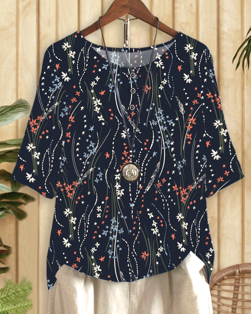 Perfect for casual or everyday wear, featuring floral prints and a comfortable round-neck design.