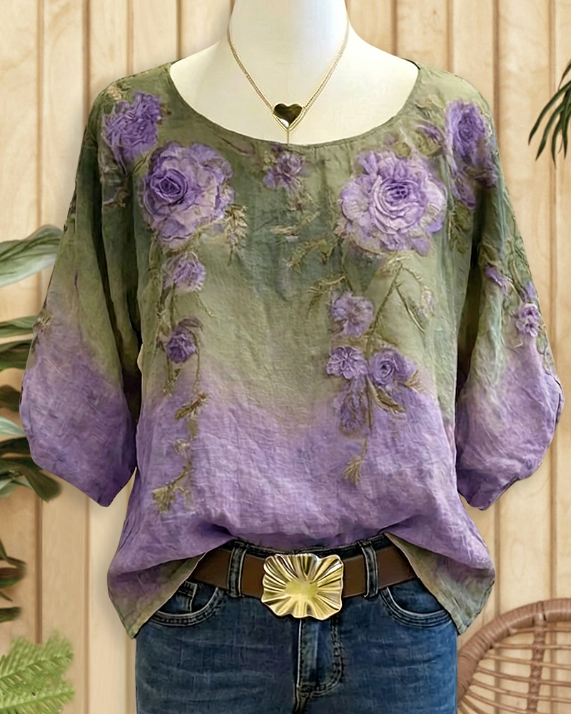 Feminine floral round-neck blouse for casual days or brunch.