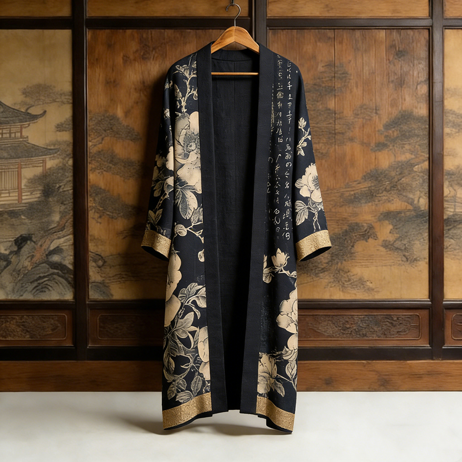 Japanese Art Retro Plants And Flowers Printed Long Cardigan