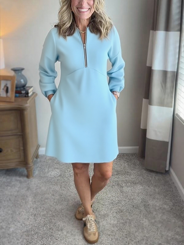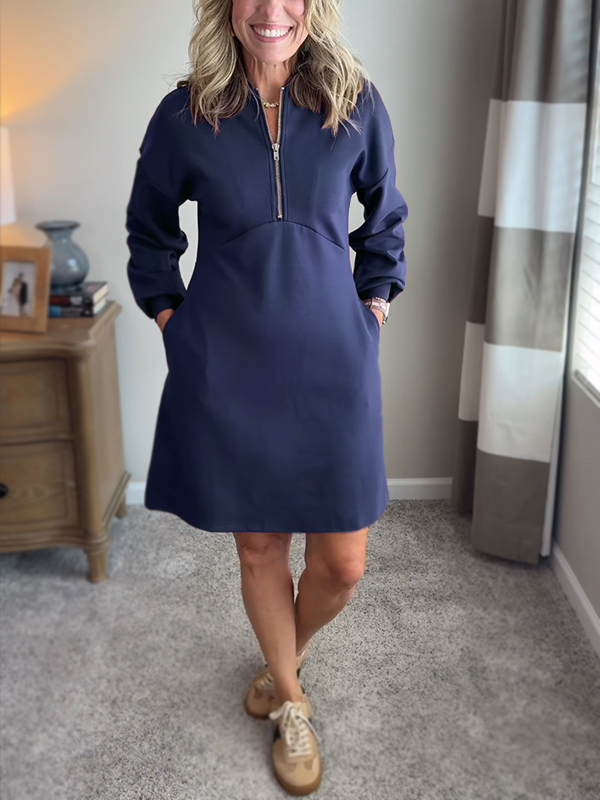 The cotton crew neck zip pocket dress is a versatile and stylish addition to any wardrobe. With its unique design elements and comfortable fit, it is perfect for both casual outings and more formal occasions. Embrace the effortless elegance of this dress and let it become your go-to piece for a variety of events.