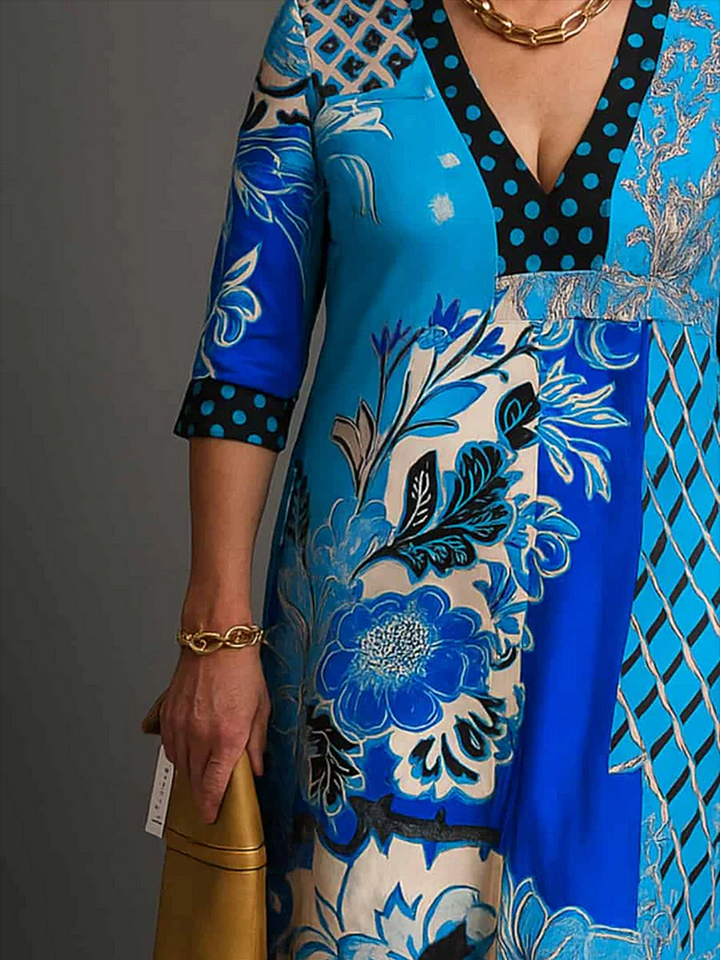 Timeless Elegance: Floral Polka Dot Print V-neck Dress