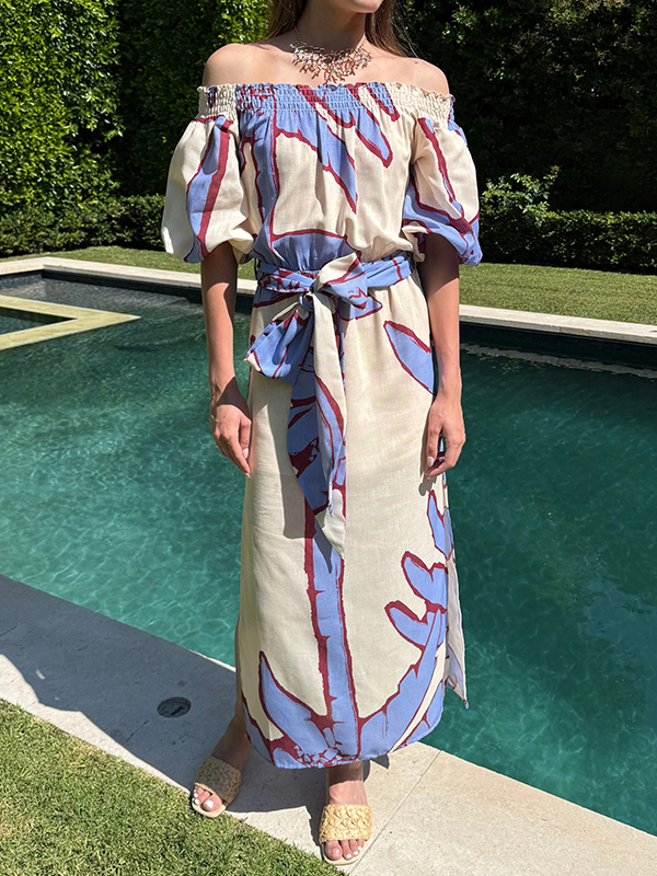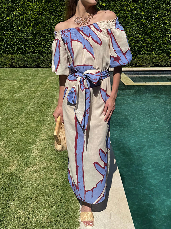The Linen Tie Bubble Sleeve Printed Dress is designed for the modern woman who cares about sophistication and style. The elegant Maxi long dress is perfect for any occasion.