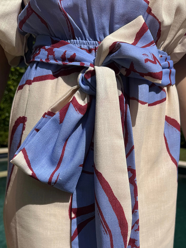 Timeless Elegance: Linen Tie Bubble Sleeve Printed Dress