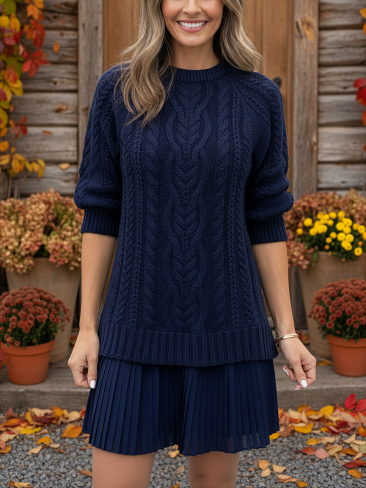 The round neck ribbed wool knit dress is a versatile and stylish addition to any wardrobe. With its unique design elements and comfortable fit, it is perfect for both casual outings and more formal occasions. Embrace the effortless elegance of this dress and let it become your go-to piece for a variety of events.