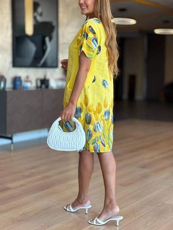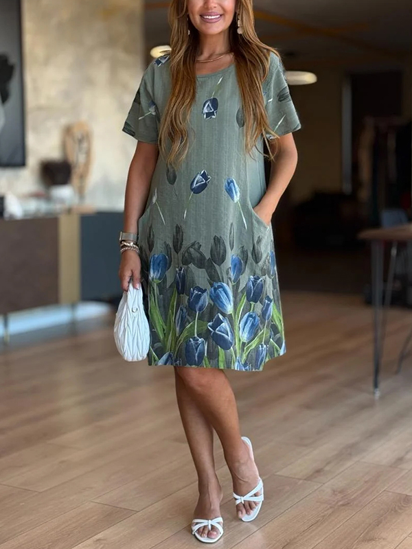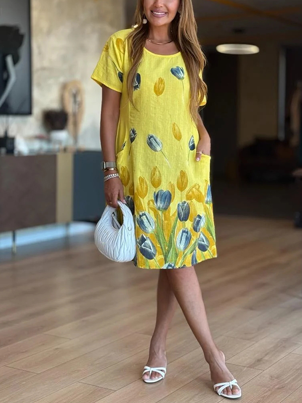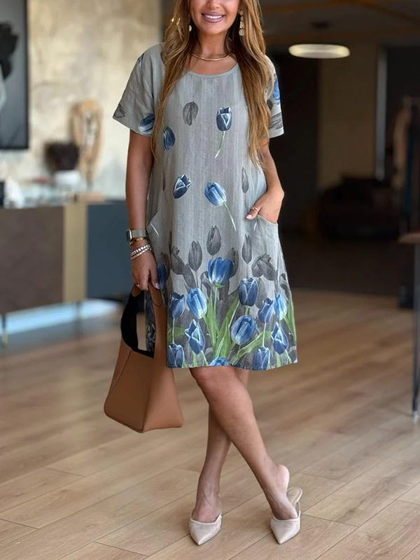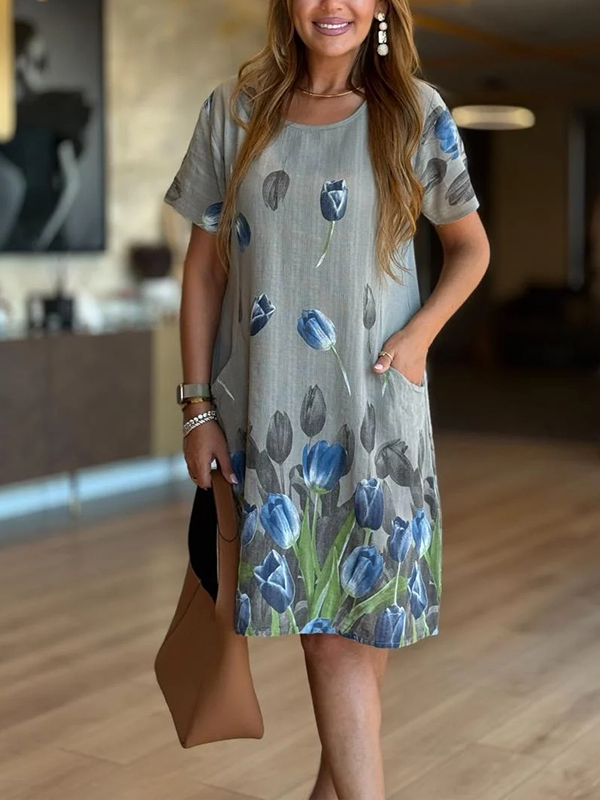 The Tulip Print Pocket Dress is a versatile and stylish addition to any wardrobe. With its unique design elements and comfortable fit, it is perfect for both casual outings and more formal occasions. Embrace the effortless elegance of this dress and let it become your go-to piece for a variety of events.
