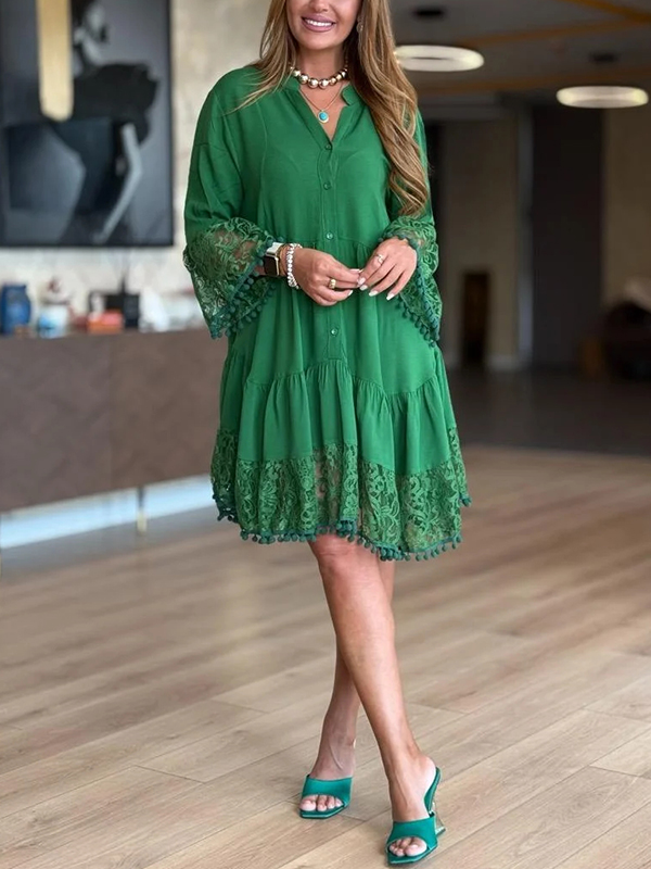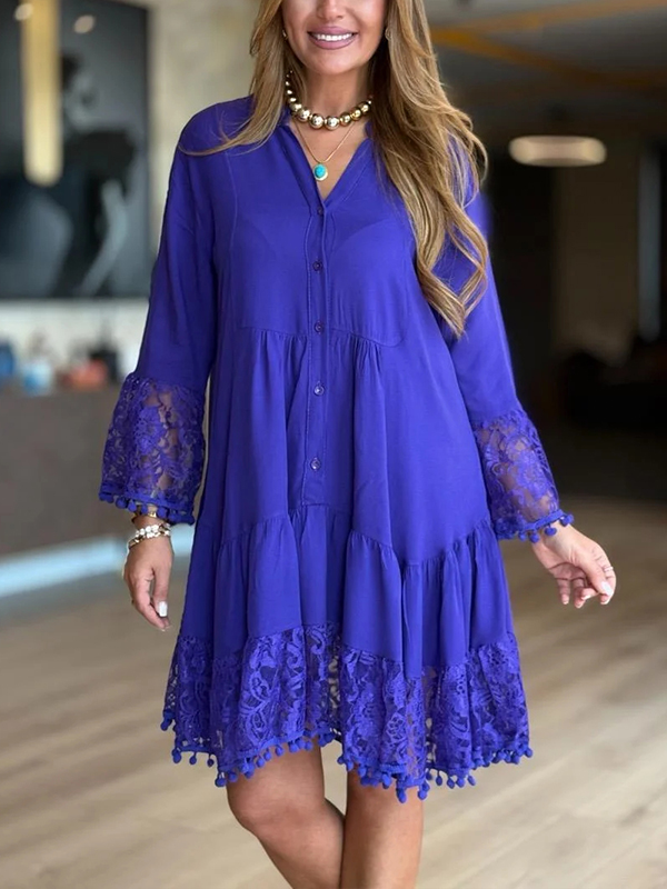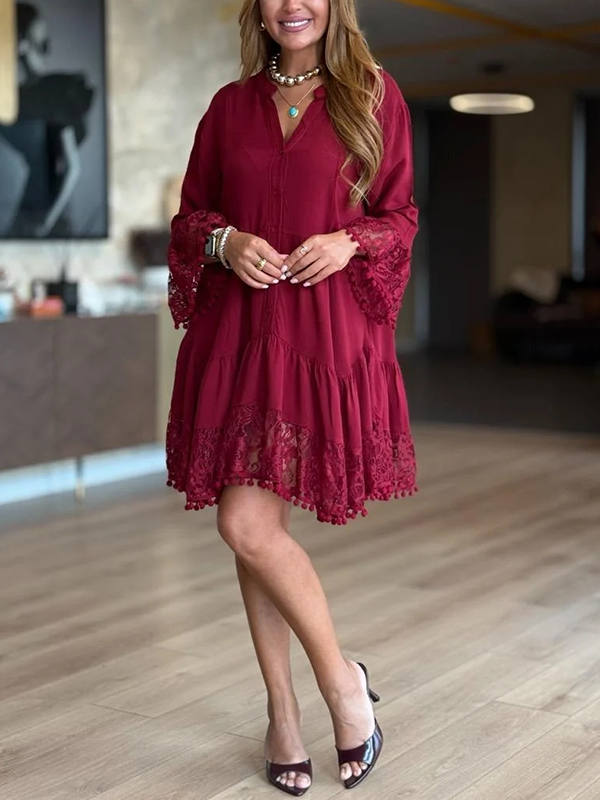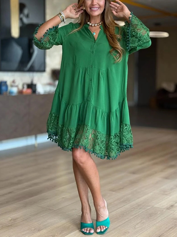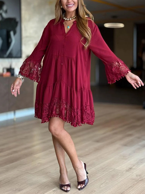 The V Neck Lace Casual Dress is a versatile and stylish addition to any wardrobe. With its unique design elements and comfortable fit, it is perfect for both casual outings and more formal occasions. Embrace the effortless elegance of this dress and let it become your go-to piece for a variety of events.