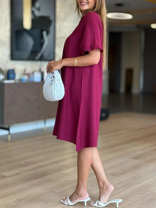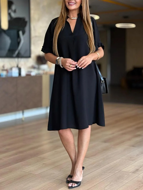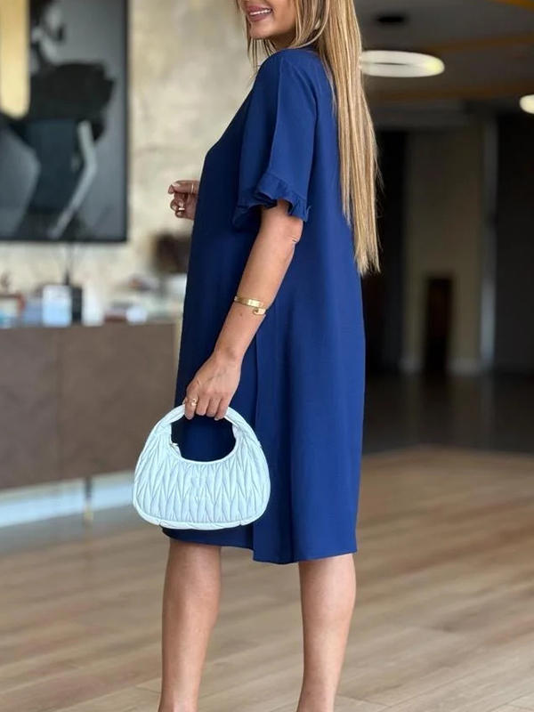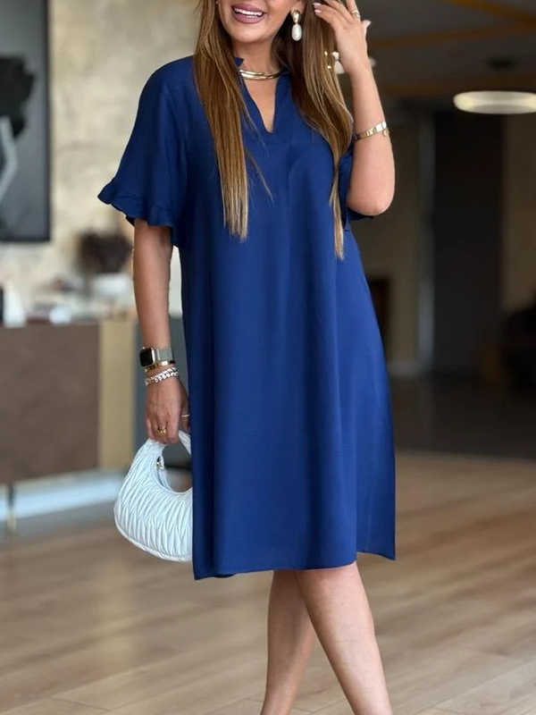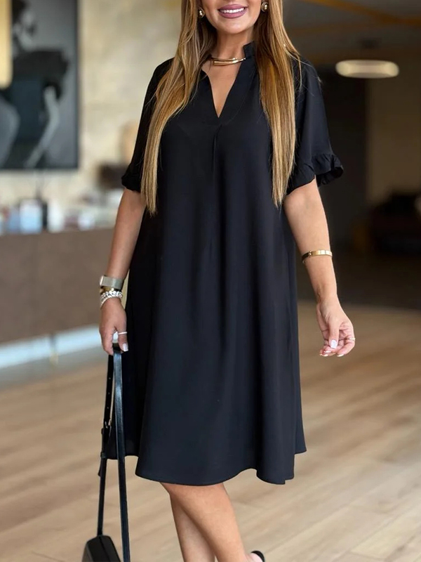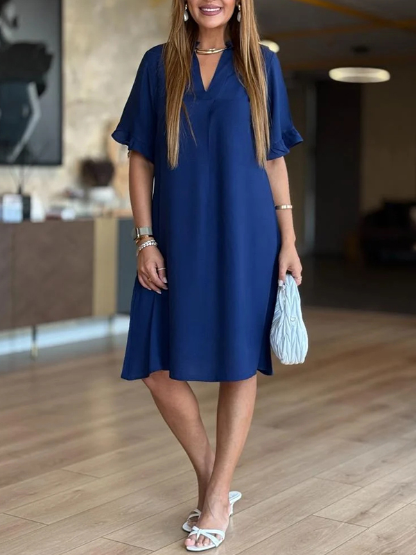 The V Neck Ruffle Sleeve Casual Dress is a versatile and stylish addition to any wardrobe. With its unique design elements and comfortable fit, it is perfect for both casual outings and more formal occasions. Embrace the effortless elegance of this dress and let it become your go-to piece for a variety of events.