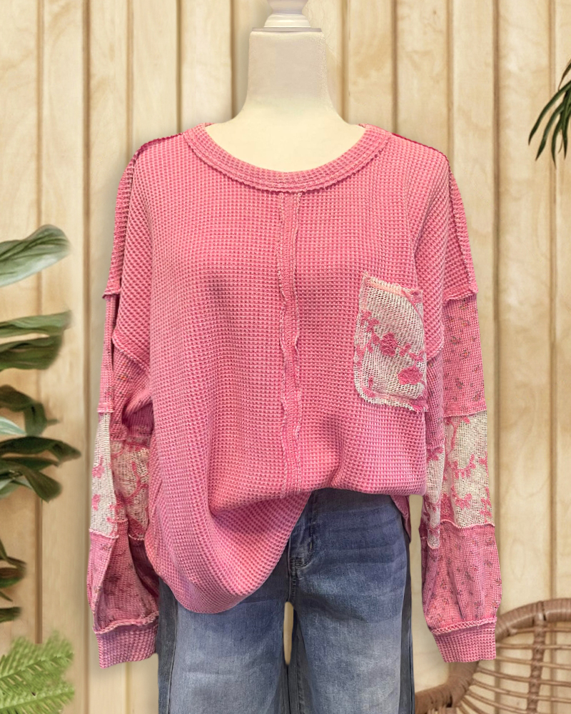 Relaxed round-neck shirt with patchwork and seamed details for a casual, stylish look
