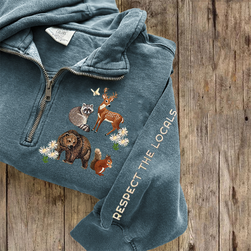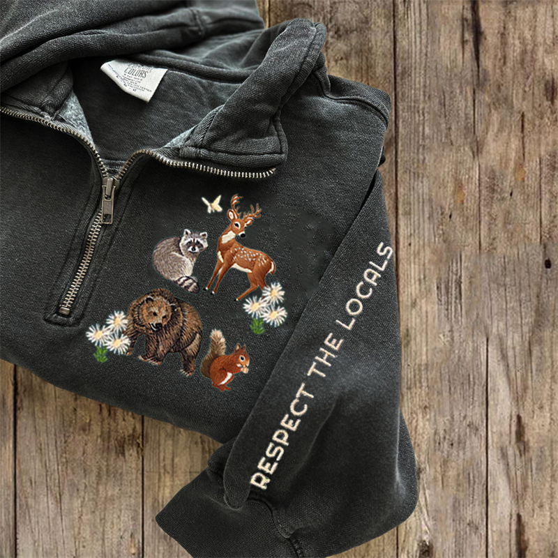 VChics Respect The Locals Protect National Park Embroidered Zip Up Sweatshirt