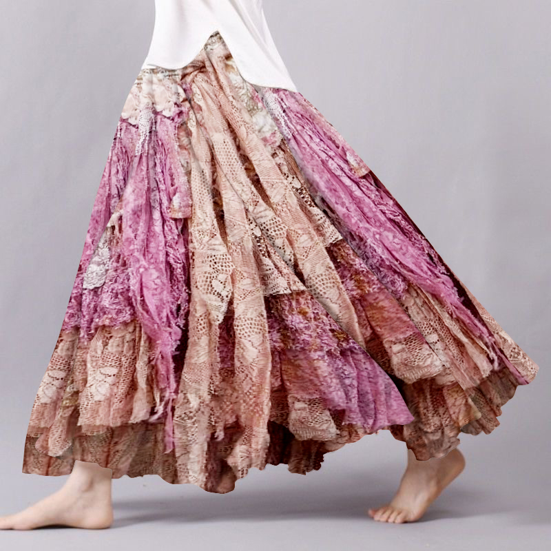 VChics Vintage Lace Boho Flowy Wide Skirt