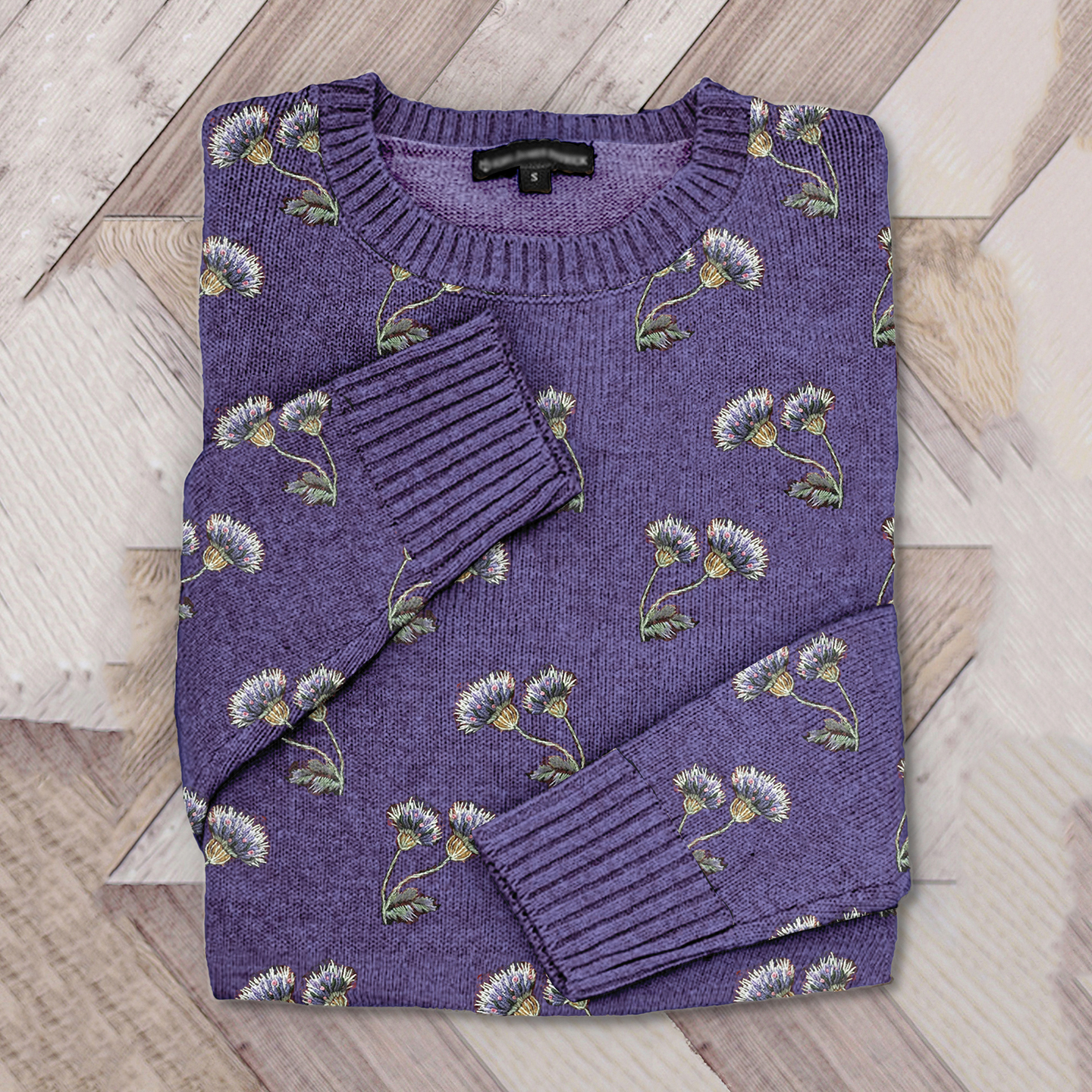 VChics Vintage Scotland Thistle Embroidery Cozy Knit Sweater