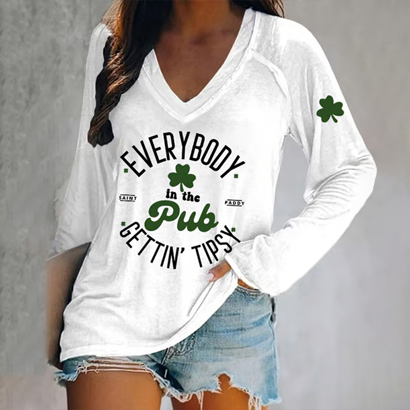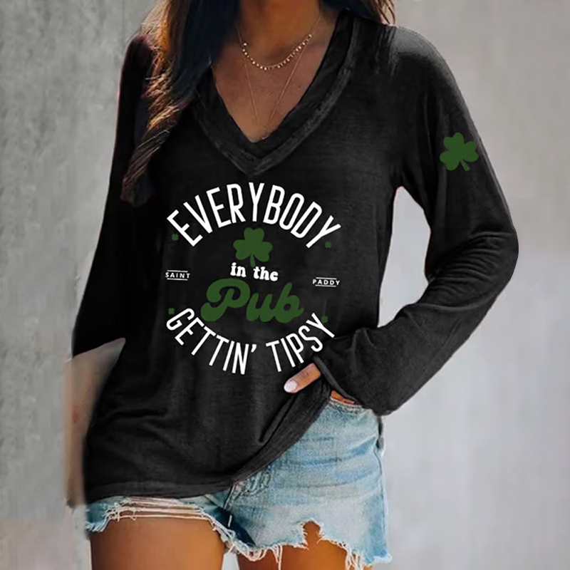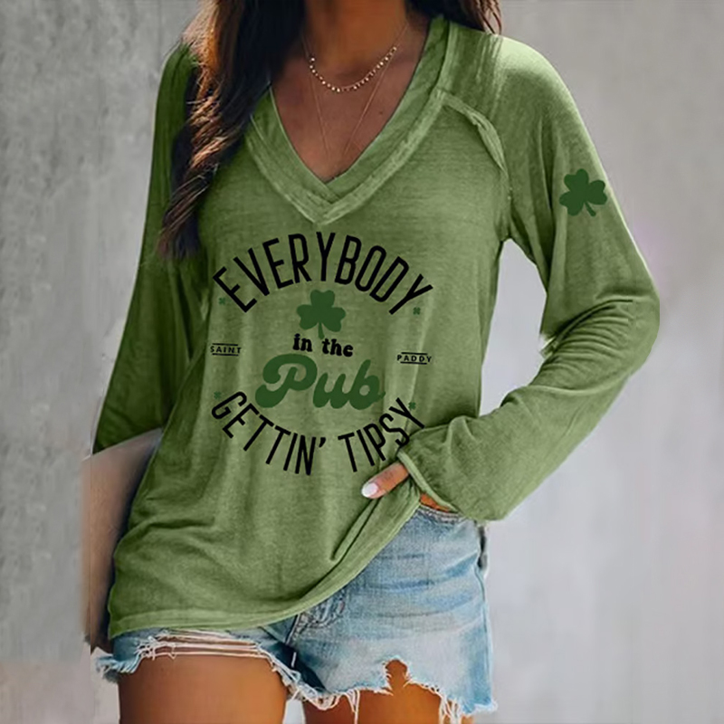 VChics Women's Everybody In The Pub Getting Tipsy St. Patrick's Day Print V-neck T-shirt