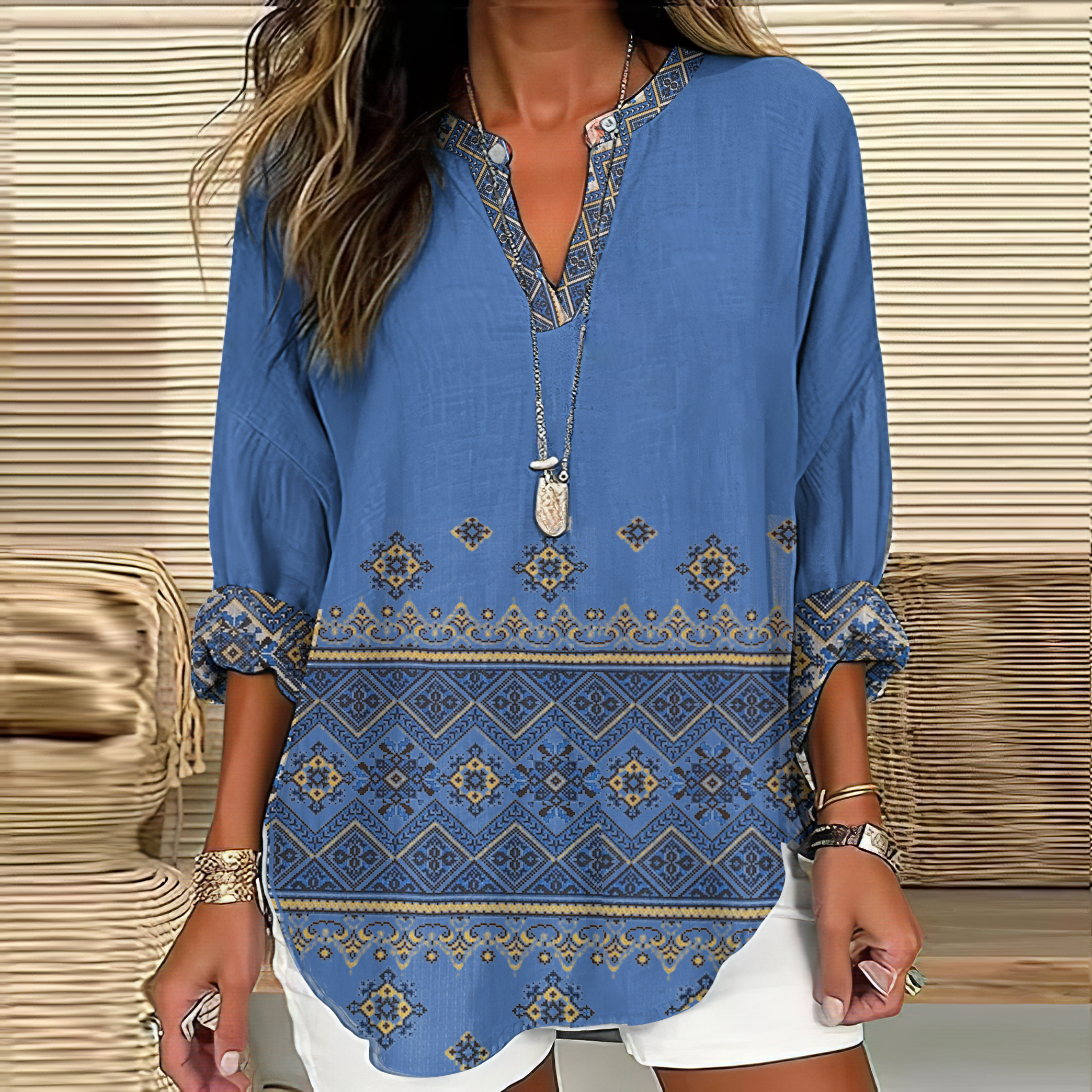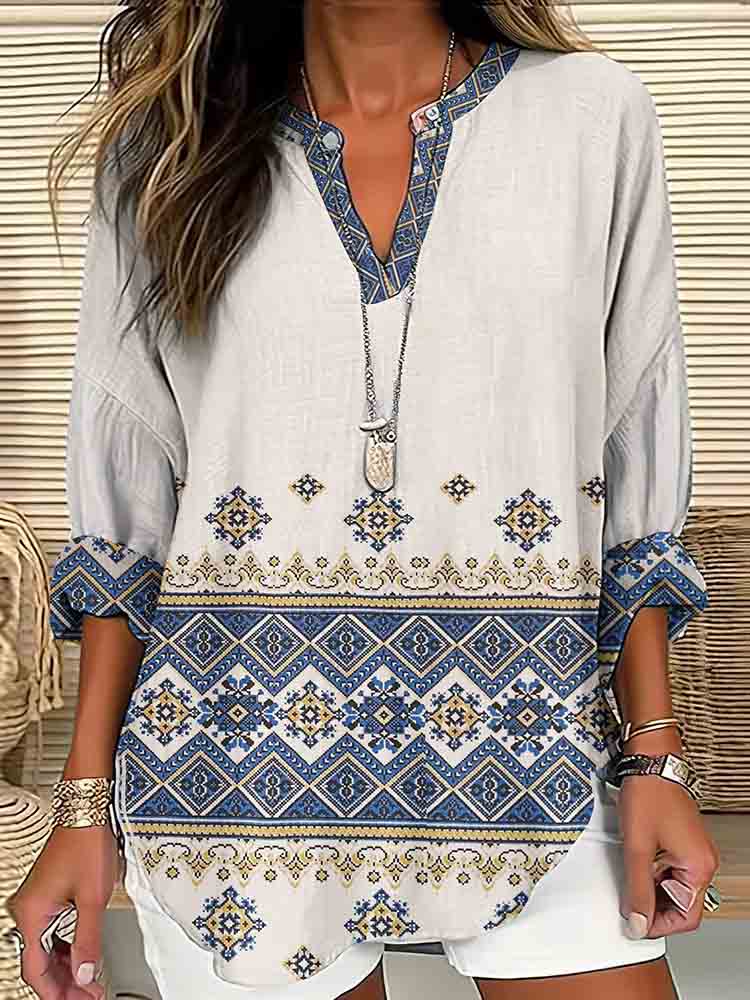 VChics Women's Ukraine Art V-neck Casual Linen Blend Blouse