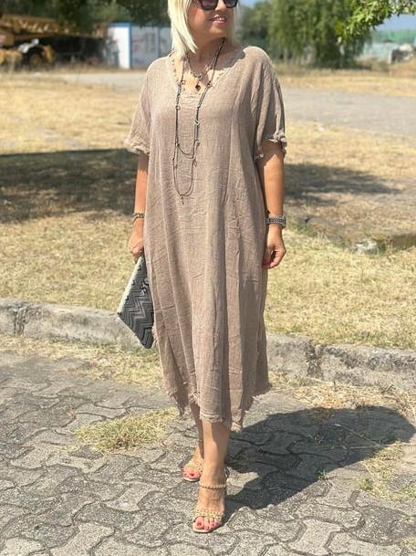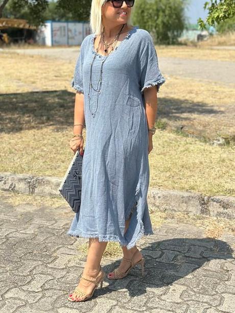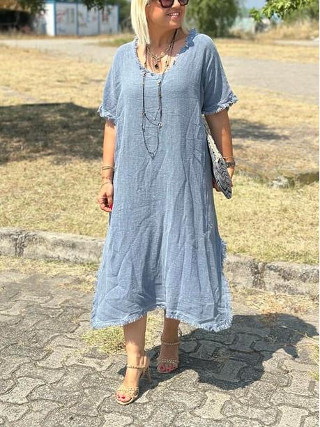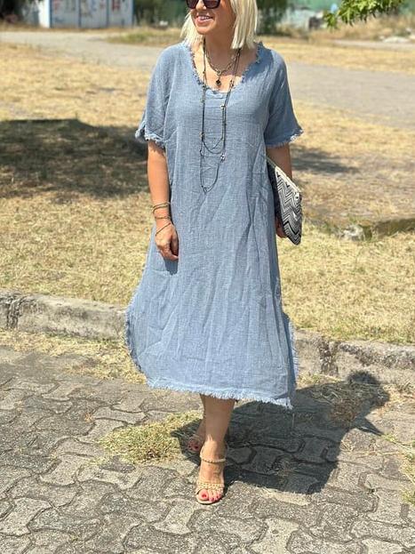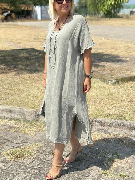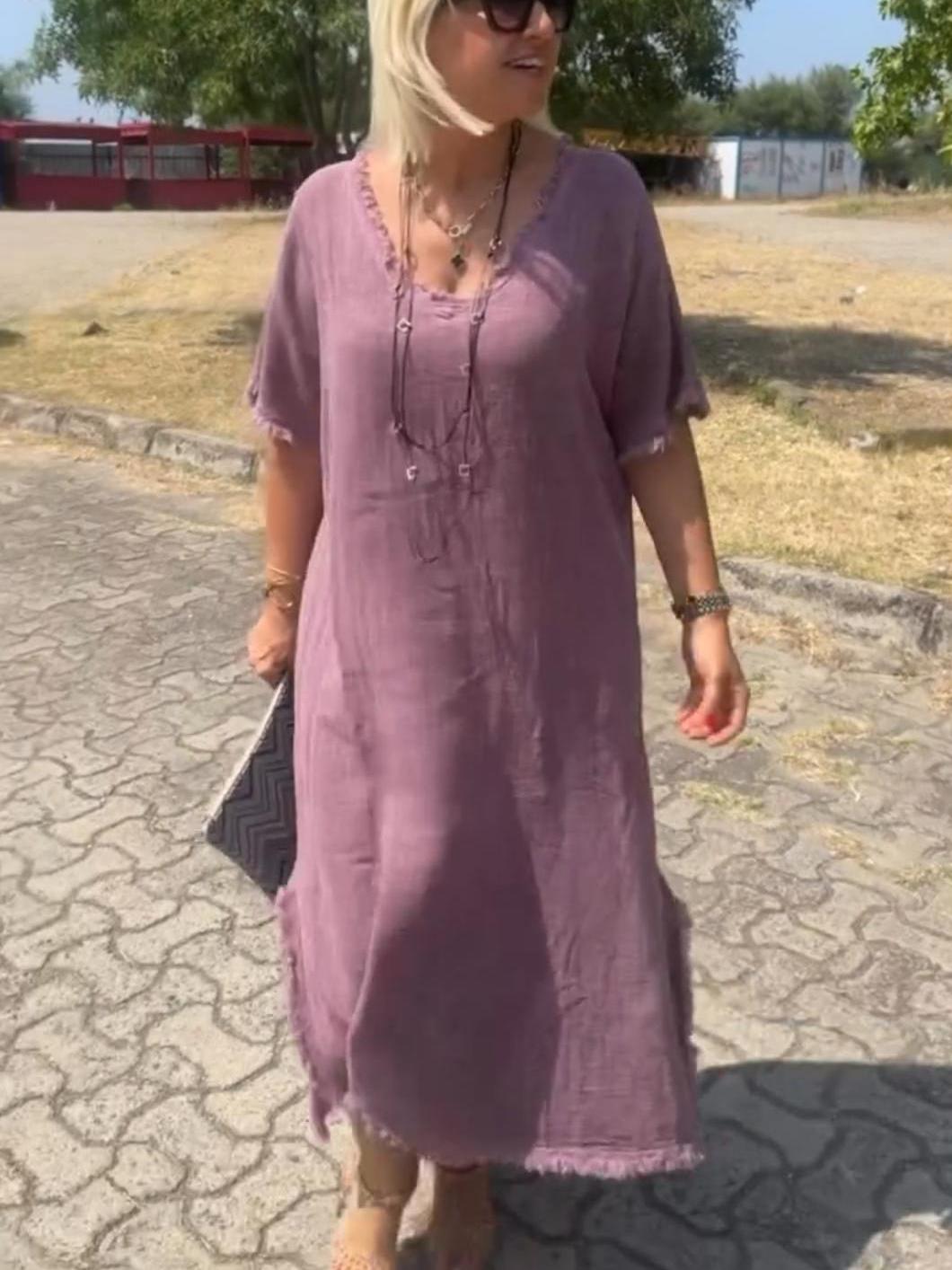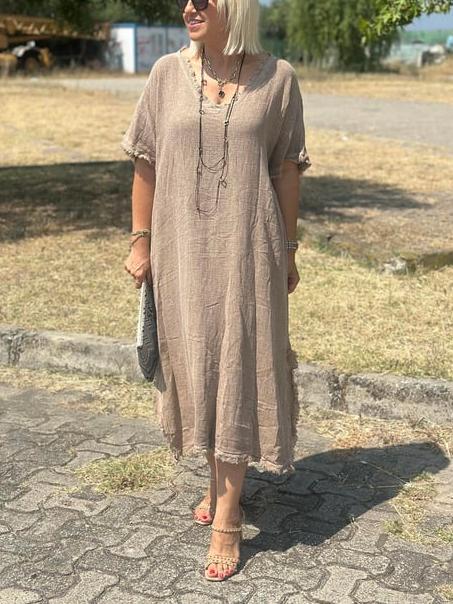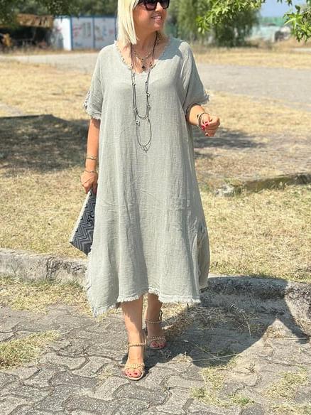 Timeless Elegance: Vintage Tassel Trimmed Cotton Linen Dress
