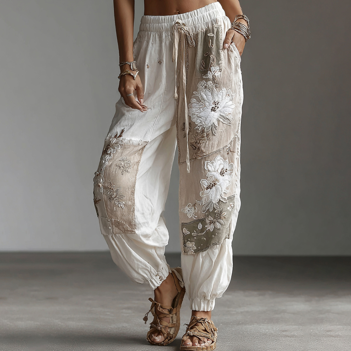 Women's Retro Floral Patchwork Art Casual Pocket Pants