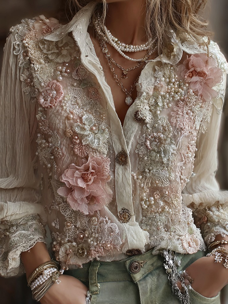 Women's Vintage Floral Pattern Casual Long Sleeve Shirt